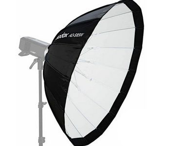 Softbox portatile da diametro di 85 cm della Godox adotta un design a parabola profonda che consente di puntare la luce in modo lineare e di diminuire progressivamente la luminosità partendo dal centro in avanti, offrendo effetti di luce estremamente uniformi e morbidi.