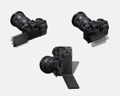 Per una visione ottimale, il monitor a 4 assi con angolazione variabile può essere posizionato con orientamento sia orizzontale che verticale; inoltre, il monitor esteso sulla parte posteriore del corpo della fotocamera è inclinabile verso l'alto e verso il basso, rispettivamente di circa 98° e 40°, e lateralmente di ben 180°.