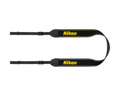 Cinghia a tracolla in tessuto intrecciato con logo Nikon ricamato.