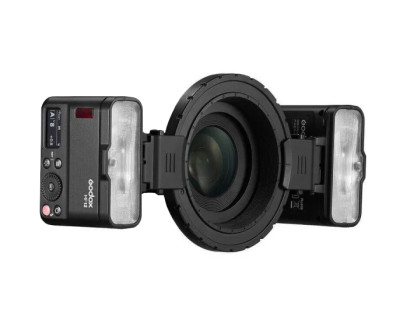 L'anello di montaggio di Godox specificamente progettato per il flash Macro MF12 è dotato di una struttura a pendenza che consente di angolare le teste del flash verso l'interno dell'obiettivo per fotografie estremamente ravvicinate.