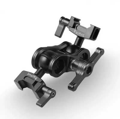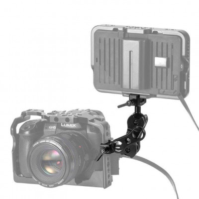 Il braccio articolato SmallRig 2072 include due teste a sfera con viti da 1/4” su entrambe le estremità e un morsetto a sfera. Può fissare una piastra con binari NATO, come il Top Plate 1853, Side Plate 1854 o un cage con binari NATO su un lato, e può anche collegare un cage per monitor con binari NATO sull’altro lato, come Monitor Cage 1834/1726/1788 . È dotato di una vite a testa zigrinata su ciascuna estremità per bloccare manualmente il dispositivo. Il monitor, una volta montato, può essere regolato in diverse posizioni e angolazioni sia tramite la testa a sfera che la clamp a sfera, e un singolo dado ad alette viene applicato per bloccare direttamente la doppia testa a sfera.