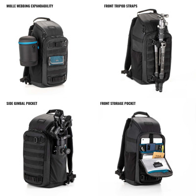1-2 fotocamere Mirrorless o DSLR con 4-6 obiettivi (fino a 70-200 mm 2.8 montato), più un tablet fino a 11 pollici (28 cm). Si adatta anche a DJI Mavic e altri droni compatti.