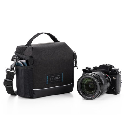 La borsa a tracolla Skyline V2 7 può contenere una fotocamera mirrorless o DSLR con 1 o 2 obiettivi.