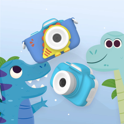 Fotocamera, cover dinosauro, cinghia, adesivi, cavo USB, manuale.