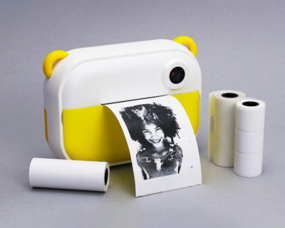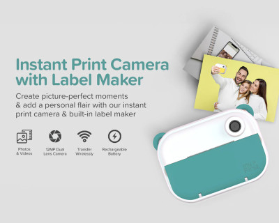 Fotocamera digitale a doppia lente con un obiettivo selfie anteriore ed uno posteriore, in grado di stampare istantaneamente con inchiostro termico in 10 secondi. È anche in grado di trasferire foto in modalità wireless e ha un'applicazione mobile dedicata per la modifica/creazione di etichette. Incluso nella confezione un supporto da tavolo.