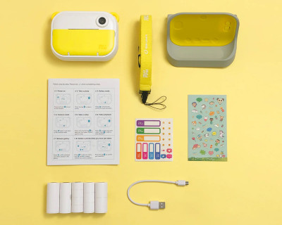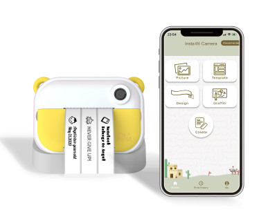 Fotocamera digitale a doppia lente con un obiettivo selfie anteriore ed uno posteriore, in grado di stampare istantaneamente con inchiostro termico in 10 secondi. È anche in grado di trasferire foto in modalità wireless e ha un'applicazione mobile dedicata per la modifica/creazione di etichette. Incluso nella confezione un supporto da tavolo.