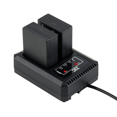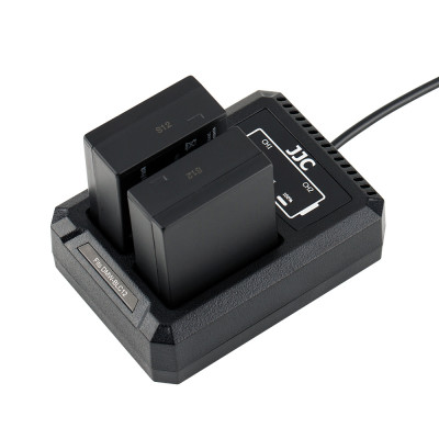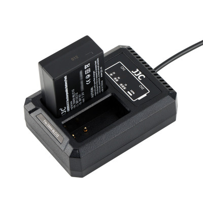 Il caricabatterie doppio JJC DCH-BLC12 consente di caricare 2 batterie contemporaneamente. Rileva automaticamente quando le batterie sono completamente cariche e interrompe la ricarica per evitare di danneggiarle.