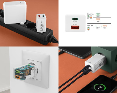 Caricatore da rete Fast Charger (GaN) USB-C + USB-A Power Delivery 45W