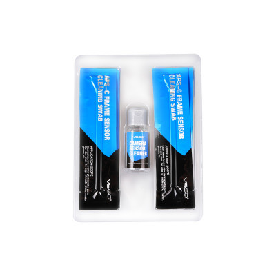 I kit DDR-12 M4/3 per la pulizia del sensore marchiati VSGO sono composti da 12 swab e 15 ml di liquido per la pulizia del sensore.