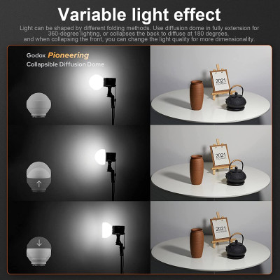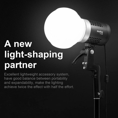 Ideale per illuminare piccoli spazi e stanze, questa cupola a diffusione di Godox espande la diffusione del fascio di luce per un'illuminazione a 360°.