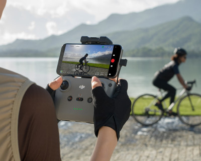 Il supporto del radiocomando fissa il dispositivo mobile e consente di visualizzare il feed della fotocamera ad alta definizione in tempo reale tramite l'app DJI Fly.