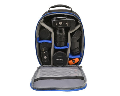 Zainetto per corredi reflex o mirrorless di medie dimensioni. Può contenere una fotocamera con tre/quattro obiettivi, un flash ed altri accessori. Divisori imbottiti regolabili con fermi in velcro. Tracolla regolabile e maniglia superiore per il trasporto. Realizzato in nylon nero impermeabile, rivestito all'interno con tessuto anti-graffio. Elegante e funzionale, il perfetto equilibrio tra convenienza e prestazioni.