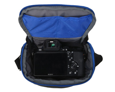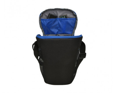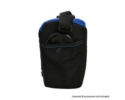Borsa "a musetto" per reflex digitali (formato DX) con zoom standard 18-55 mm. Due tasche interne per memory card, due tasche esterne laterali per piccoli accessori. Tracolla regolabile e maniglia superiore per il trasporto. Realizzata in nylon nero impermeabile, rivestita all'interno con tessuto anti-graffio.