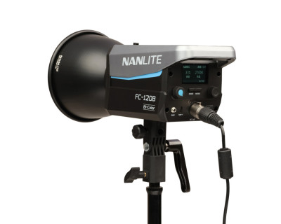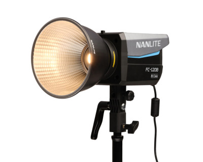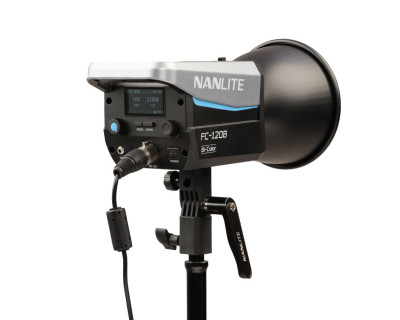Nanlite FC-120B è un proiettore LED bicolore compatto e leggero, soprattutto in relazione alla luce che emette (5333 lux, 495 fc @1M a bulbo nudo 5600K). Funziona a batterie, con powerbank o a corrente alternata, offre una luce estremamente precisa e una gamma versatile di metodi di controllo: onboard, Bluetooth, 2.4G e DMX/RDM. È facile da usare per i principianti ma offre anche funzioni avanzate per un uso più professionale. È inclusa una custodia in schiuma rigida con chiusura a scatto che contiene l'FC-120B, l'alimentatore CA, il riflettore a 45° e l'adattatore Bowens-Mount.