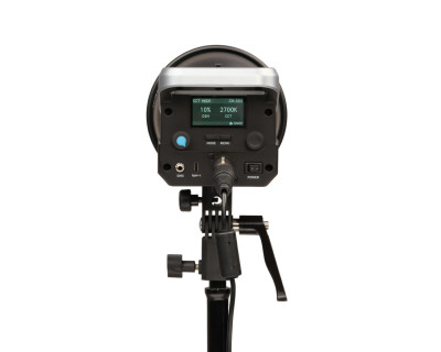 Uno dei motivi per cui l'FC-120B può essere così compatto è che è dotato di attacco FM. Il riflettore a 45°, ben costruito, utilizza questo attacco e fornisce una luce omogenea e regolare, aumentando la resa a 17450 lux, 1621 fc @1M 5600K. Per l'attacco FM sono disponibili molti modificatori di luce compatti e leggeri, come il Fresnel FL-11, i softbox FMM e gli attacchi per proiezione PJ-FMM (tutti venduti separatamente). L'adattatore Bowens incluso apre un mondo di compatibilità con i modificatori di luce. C'è anche un attacco per ombrelli integrato.