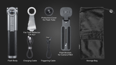 Corpo del flash, riflettore, staffa per fotocamera, protezione per il tubo flash, cavo Trigger, cavo per la ricarica, custodia.