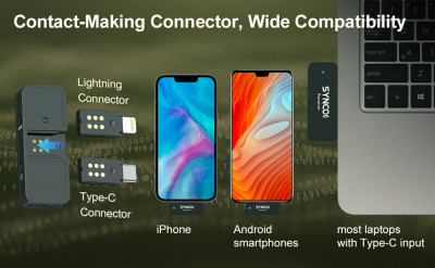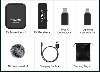 Il microfono per telefono wireless G1TL include un trasmettitore che supporta un microfono esterno (non incluso) e un ricevitore dotato di un pin pogo elettronico (connettore Lightning e attacco USB-C) per collegare facilmente SMARTPHONE ANDROID e iPhone Lightning.