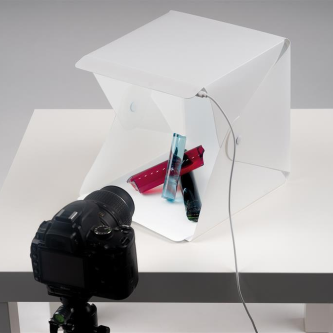 Con le sue dimensioni di ca. 23 x 23,5 x 22 cm, la scatola luminosa Maxi LED è adatta per scattare foto di sciarpe e scialli, vestiti per bambini, giocattoli, oggetti d'arte o creazioni gastronomiche opulente.