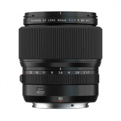 Il Fujifilm GF80mmF1.7 R WR è un obiettivo standard per Medio formato. La messa a fuoco avviene tramite Motore AF obiettivo (Stepper Motor), non è presente stabilizzazione d'immagine. Corpo tropicalizzato, paraluce e custodia inclusi.