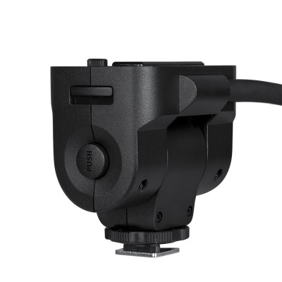 Premere il pulsante di blocco sul lato per consentire alla testa di inclinarsi verso l’alto di 90 gradi. Nella parte inferiore, è possibile utilizzare un attacco a slitta per accessori per il montaggio sulla fotocamera, mentre la filettatura da 1/4″-20 consente il fissaggio a stativi o treppiedi compatibili.