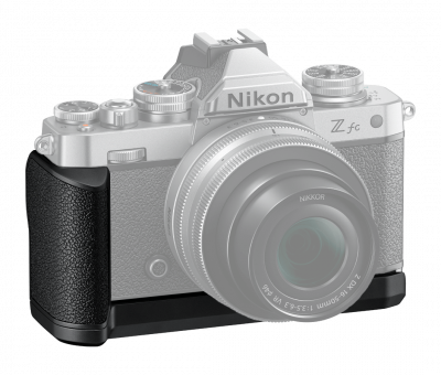 Impugnatura fotocamera dedicata per Z fc. Progettata per consentire una presa più profonda, questa impugnatura presenta la stessa texture nera della parte posteriore del corpo della fotocamera, per un aspetto senza interruzioni.