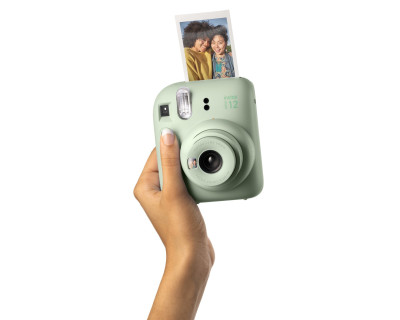 INSTAX Mini 12 dispone anche del controllo automatico del flash, che aiuta a prevenire immagini sbiadite. La nuova struttura dell’obiettivo permette passaggi intuitivi sia per accendere e spegnere la fotocamera sia per passare alla modalità Close-up/Selfie con una semplice rotazione dello stesso.
