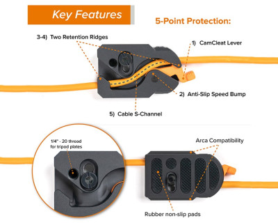 kit con TetherGuard LeverLock, una piastra che consente di collegare o rimuovere velocemente un cavo dalla videocamera senza dover rimuovere la piastra, rendendo le operazioni di installazione e smontaggio un gioco da ragazzi, pur mantenendo le porte sicure e protette da eventuali danni.