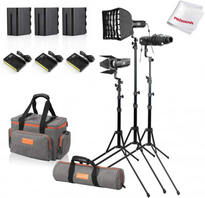 Godox ha messo insieme questo kit completo di 3 luci a LED S30-D per fornire ai fotografi e videomaker un sistema di illuminazione completo. Il kit include tre luci a LED S30 ciascuna con alette, un alimentatore e un supporto luci. Per un’illuminazione precisa il kit include l’attacco per proiezione ottica con un obiettivo da 85mm. Godox fornisce anche una serie completa di accessori per esso tra cui un diaframma, una serie di alette per l’inquadratura, un set di gobo con supporto e un set di scrim. Sono inclusi anche due softbox, un set di gelatine colorate e un set di gelatine per la regolazione della temperatura di colore. Vengono fornite due borse, una per i supporti per luci e l’altra per gli S30 e gli accessori.