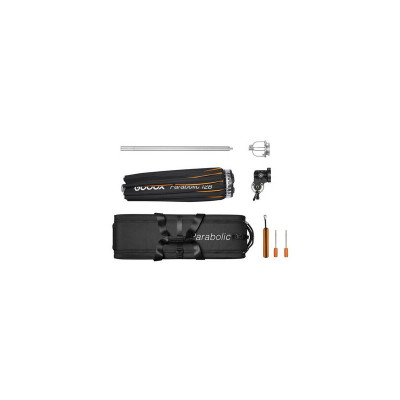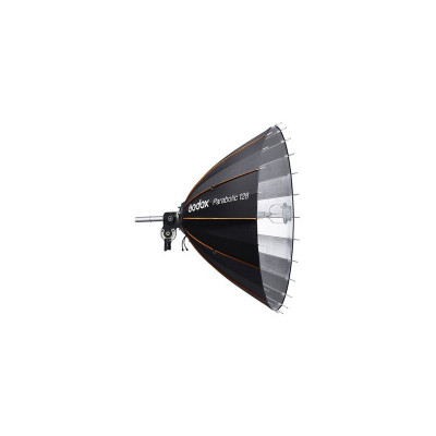 Progettato per fotografi di moda e ritrattisti, il kit riflettore Parabolic 128 di Godox offre luci nitide e speculari fornendo allo stesso tempo un'ampia fonte di luce che avvolge il soggetto. Il riflettore presenta un interno argento altamente riflettente con un diametro esterno di 47,2". Oltre al grande riflettore, questo kit include un supporto di messa a fuoco PF-M, un'asta di messa a fuoco PF-R870, un adattatore stroboscopico PF-BM, un kit impugnatura PB-G1, e una borsa per il trasporto CB35.