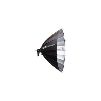 Progettato per fotografi di moda e ritrattisti, il kit riflettore Parabolic 158 di Godox offre luci nitide e speculari fornendo anche un'ampia fonte di luce che avvolge il soggetto. Il riflettore è dotato di un interno argento altamente riflettente con un diametro esterno di 59,1". Oltre al grande riflettore, questo kit include un supporto di messa a fuoco PF-M, un'asta di messa a fuoco PF-R870, un adattatore stroboscopico PF-BM, un kit impugnatura PB-G1, e una borsa per il trasporto CB35.