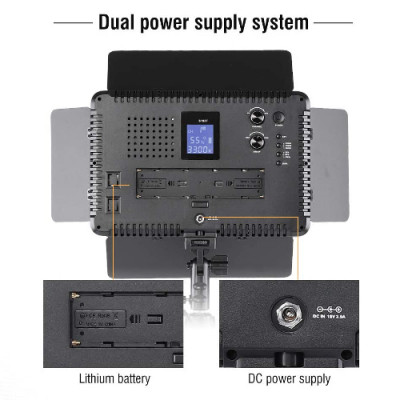 La confezione comprende: Led, attacco slitta flash, telecomando, alimentatore