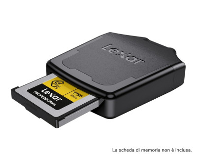 Lettore di schede CFexpress™ di tipo B per il trasferimento di immagini in alta qualità e video RAW in 4K con tutta la velocità dello standard USB 3.1 di seconda generazione. Design compatto e portatile per fotografi e operatori video in viaggio. Include cavo da USB di tipo C a USB di tipo A.