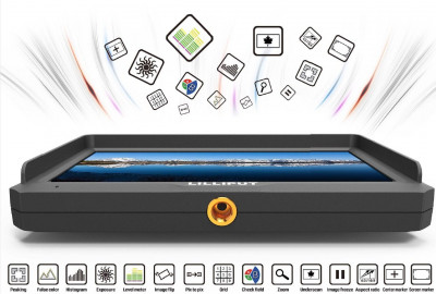 Lilliput A5 offre numerose funzioni ausiliarie per scattare foto e realizzare filmati, come peaking, falso colore e misuratore di livello audio. i pulsanti definibili dall'utente per le funzioni ausiliarie personalizzate come tasti di scelta rapida, come peaking, underscan e checkfield. Utilizzare il quadrante per selezionare e regolare il valore tra nitidezza, satura. tinta e volume, ecc.