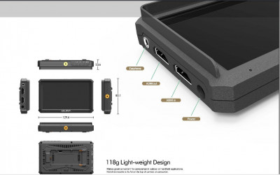 Lilliput A5 è il primo monitor Lilliput a disporre di ingressi 4K su schermo da 5 ", compatibile con UHD 4K con monitor da campo 16: 9 Aspect Ratio che presenta le sue immagini su un pannello LED Full HD 1920 x 1080. Se sei un cellulare sopratutto che ha aggiornato lo spazio di lavoro 4K, l'A5 offre il controllo sul flusso di lavoro di ripresa sia sul campo che in studio.