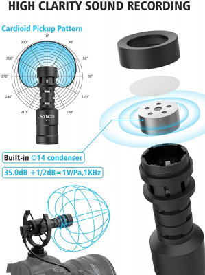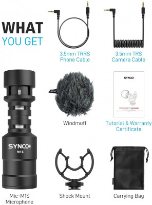 SYNCO Mic-M1S, microfono per telefono e fotocamere, offre a vlogger mobili, creatori di video e giornalisti un'esperienza di utilizzo semplice e prestazioni audio eccellenti. Design con assorbimento degli urti, senza batteria e condensatore cardioide garantisce ottimi risultati sonori .