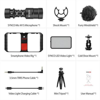 Il primo kit vlog SYNCO è una combinazione completa di ogni apparecchiatura di cui hai bisogno in ogni live streaming. Consiste principalmente di un microfono direzionale, una luce di riempimento e un impianto video per smartphone, un treppiede, pensato per essere una soluzione perfetta per la creazione di contenuti premium.