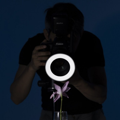 Il flash ad anello, posizionato sulla stessa asse ottica dell'obiettivo, fornisce la luce senza ombre in modo da illuminare uniformemente il soggetto rendendo tutti i dettagli chiaramente visibili. Inoltre, la forma rotonda del flash crea un riflesso unico negli occhi della persona fotografata, un aspetto interessante nelle sessioni fotografiche di ritratto. Questo flash, per ammorbidire la luce, è stato ottimizzato con il diffusore.
