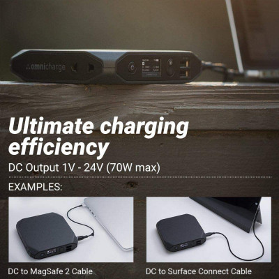 La porta coassiale universale è utilizzabile anche come uscita di corrente continua, regolabile da 1V a 24V con incrementi di 0.1V con una potenza max di 100W. Questa uscita rende Omni 20+ uno strumento di ricarica più efficiente, eliminando la necessità di portare ingombranti e pesanti adattatori, per alimentare laptop, fotocamere o proiettori.