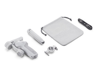 Osmo Mobile SE, morsetto magnetico per smartphone, impugnatura treppiede, cavo di alimentazione, sacca.