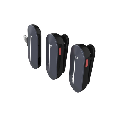 Il P2L comprende due trasmettitori a clip piccoli e leggeri ognuno con il suo microfono omnidirezionale integrato e un ricevitore compatto con un connettore Lightning che si collega direttamente al tuo iPhone. Un jack da 3,5 mm sul ricevitore ti consente di collegare le cuffie per il monitoraggio mentre stai registrando. È incluso il cavo di ricarica USB necessario per il trasmettitore e una custodia di ricarica con batteria integrata che consente di riporre e ricaricare i componenti.