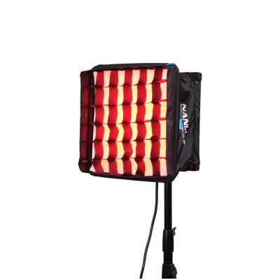 L'unità di controllo ha pulsanti, manopole e uno schermo di facile utilizzo. Puoi posizionare il pannello in alto su un supporto e accedere facilmente ai controlli e sostituire le batterie. Dispone di una porta DMX/RDM in metallo con serratura, ricevitore CRMX LumenRadio integrato, Bluetooth per l'app gratuita NANLINK e 2.4G per il telecomando a mano WS-RC-C2 o la scatola trasmettitore WS-TB-1 (entrambi venduti separatamente).