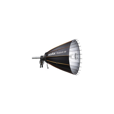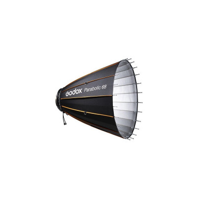 Progettato per fotografi di moda e ritrattisti, il kit riflettore Parabolico 68 di Godox offre luci nitide e speculari fornendo allo stesso tempo un'ampia fonte di luce che avvolge il soggetto. Il riflettore presenta un interno argento altamente riflettente con un diametro esterno di 27,6". Oltre al grande riflettore, questo kit include un supporto di messa a fuoco PF-M, un'asta di messa a fuoco PF-R670, un adattatore stroboscopico PF-BM, un kit impugnatura PB-G1, e una borsa per il trasporto CB35.