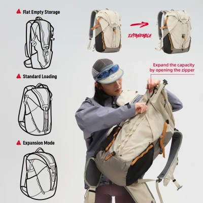 L'interno può essere liberamente personalizzato in base alle proprie esigenze, consentendo di scegliere diverse modalità di carico. Perfetto per la fotografia, l'escursionismo, il campeggio e i viaggi. Dotato di un esclusivo sistema di espansione, per passare da 25L di capacità a ben 33L.