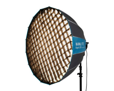 Il Nanlite Rapid 120 è un softbox di alta qualità con un design parabolico profondo che offre eccellenti prestazioni di illuminazione e può essere completamente assemblato e smontato in pochi secondi grazie all'innovativo anello a chiusura rapida. È dotato di un attacco Bowens per la massima compatibilità e include una griglia, due strati di diffusione e una borsa per il trasporto.