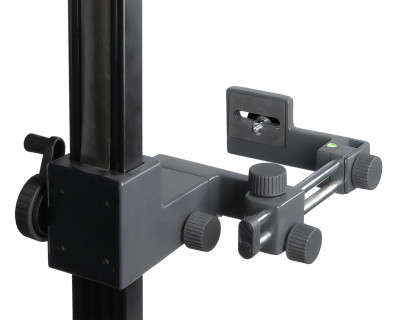 - Il supporto della fotocamera ruota di ± 90°, può essere bloccato in ogni angolazione e la livella a bolla d`aria ne permette una regolazione perfetta.