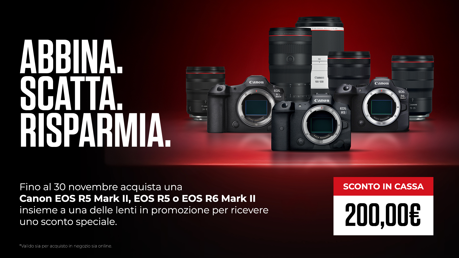 Finanziamento a tasso zero in 12, 18 o 24 mesi - prima rata a 30 giorni - su una selezione di fotocamere e obiettivi. Importo finanziabile da 1.000 a 10.000€ TAN fisso 0% TAEG 0%. Offerta valida fino al 31/12/2025.