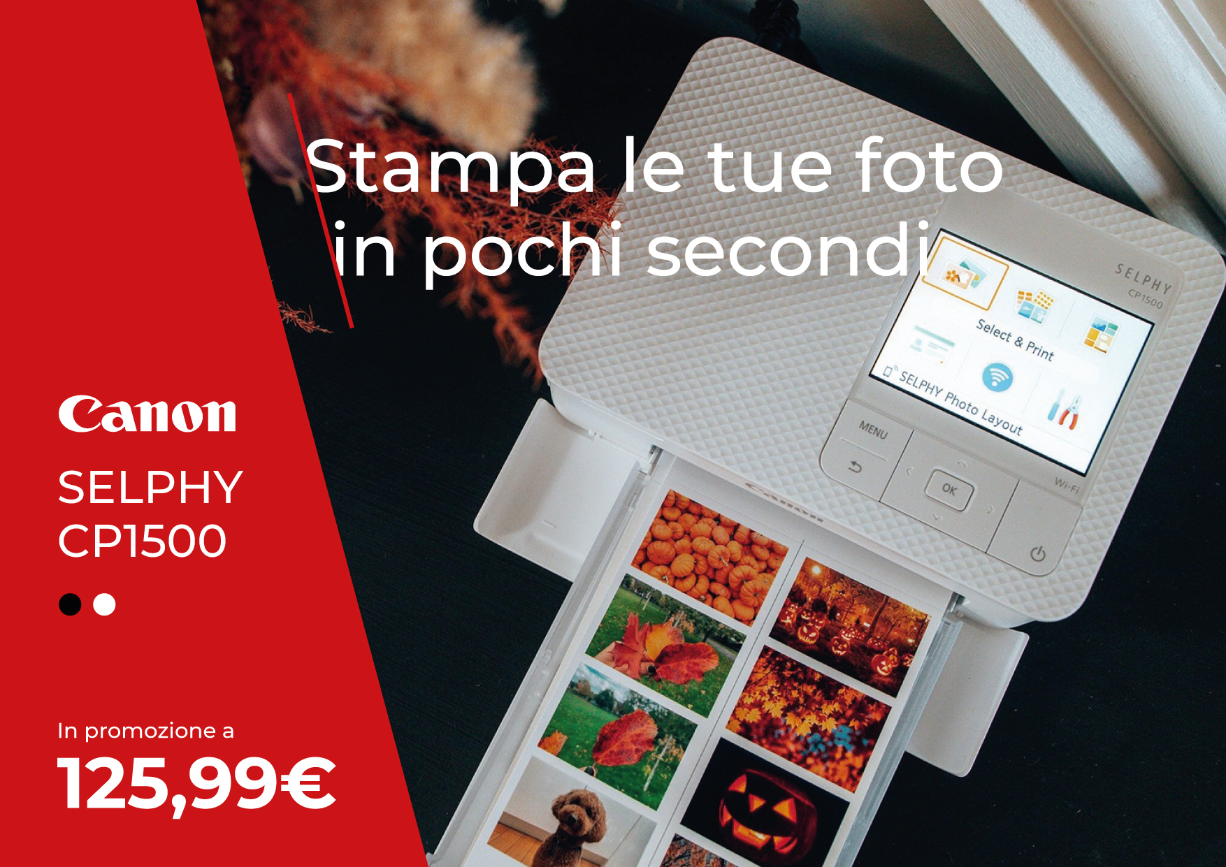 La stampante fotografica compatta SELPHY CP1500 consente di creare stampe bellissime e dai colori brillanti che durano fino a 100 anni. Connettività Wi-Fi e USB-C semplice per stampare comodamente da un'ampia gamma di dispositivi. Utilizza l'app mobile SELPHY Photo Layout per personalizzare le tue foto con layout, testi, rivestimenti con motivi, codici QR e molto altro, stampa facilmente dal tuo smartphone e condividile con amici e familiari.