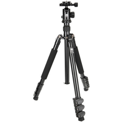 Il treppiede in alluminio ET-1004 con testa a sfera E-10 della Sirui è un treppiede in alluminio a 4 sezioni con testa a sfera e piastra a sgancio rapido.Con la colonna centrale estesa, l’altezza massima del treppiede è 140cm. Il treppiede pesa 1.4kg e può supportare fino a 8kg. Una colonna centrale corta inclusa consente il passaggio per scattare fotografie macro o da angoli bassi. Inoltre, la colonna centrale può essere invertita per fotografare da sotto il treppiede.Le gambe hanno 4 sezioni, sono dotate di fermi a scatto per una facile regolazione e ogni gamba può essere posizionata indipendentemente in tre angoli di posizione e bloccata automaticamente per fotografare in sicurezza su terreni irregolari. Le gambe dell’ET-1004 si piegano di 180º per immagazzinamento e per il trasporto. La sua lunghezza da piegato è di soli 42cm. E’ realizzato in lega di alluminio forgiato e le gambe sono realizzate in lega di alluminio economica per stabilità, prestazioni e longevità.La testa a sfera E-10 e una piastra a sgancio rapido sono forniti con il treppiede ET-1004. La testa a sfera fornisce manopole di regolazione separate per la panoramica e il bloccaggio. La manopola di bloccaggio è in metallo con una presa solida e una superficie resistente all’usura. Il meccanismo di bloccaggio della testa a sfera E-10 può supportare fino a 18kg ed è progettato per garantire movimenti fluidi e privi di vibrazioni. Viene fornita una livella a bolla per un allineamento rapido e accurato.