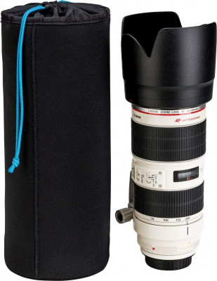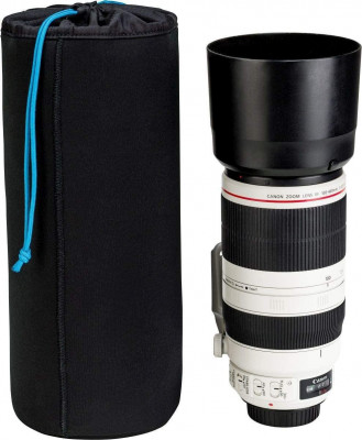 Morbido neoprene per fornire la giusta quantità di protezione extra per lenti all' interno di una borsa più grande. Con chiusura a coulisse cinches sopra la parte anteriore della lente senza arricciarsi. Design leggero fornisce protezione senza essere ingombranti o pesanti.
