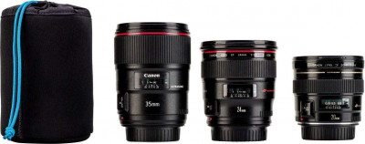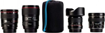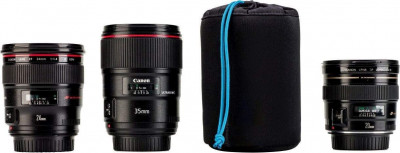 Morbido neoprene per fornire la giusta quantità di protezione extra per lenti all' interno di una borsa più grande. Con chiusura a coulisse cinches sopra la parte anteriore della lente senza arricciarsi. Design leggero fornisce protezione senza essere ingombranti o pesanti.